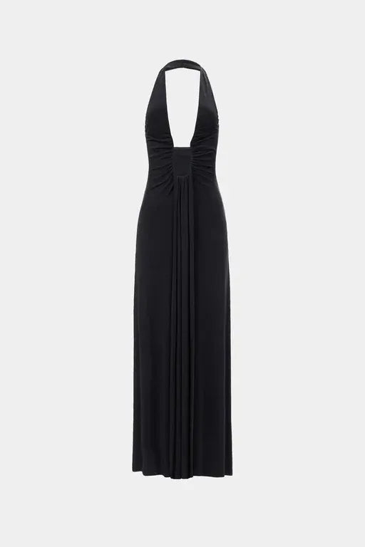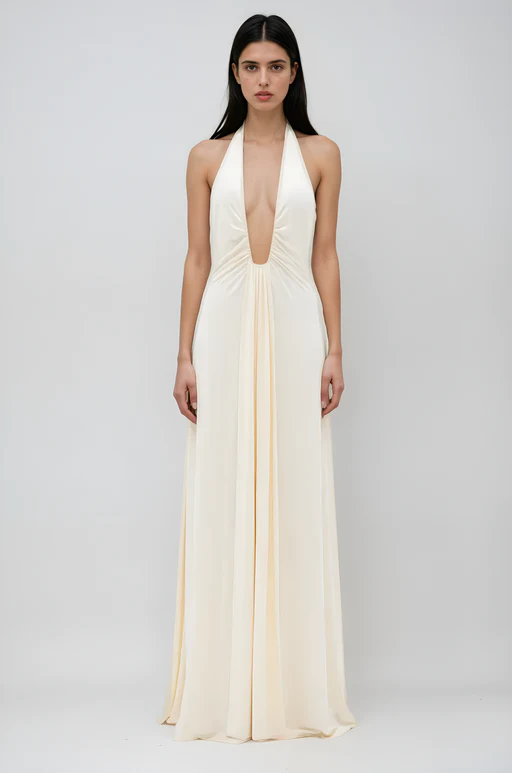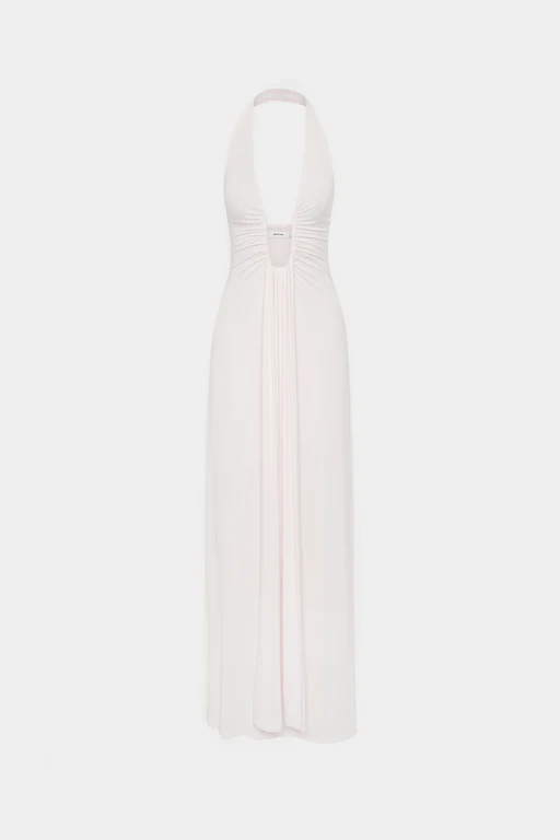 Este vestido destaca por sus sexys y elegantes detalles como su escote halter pronunciado, sus tirantes que se unen en lazo en la parte posterior del cuello y su espalda abierta. Hecho en una composición de algodón y poliéster, garantiza un ajuste excepcional a cualquier figura y libertad de movimientos en todo momento; al mismo tiempo que otorga ese toque de elegancia y sensualidad tan buscado.