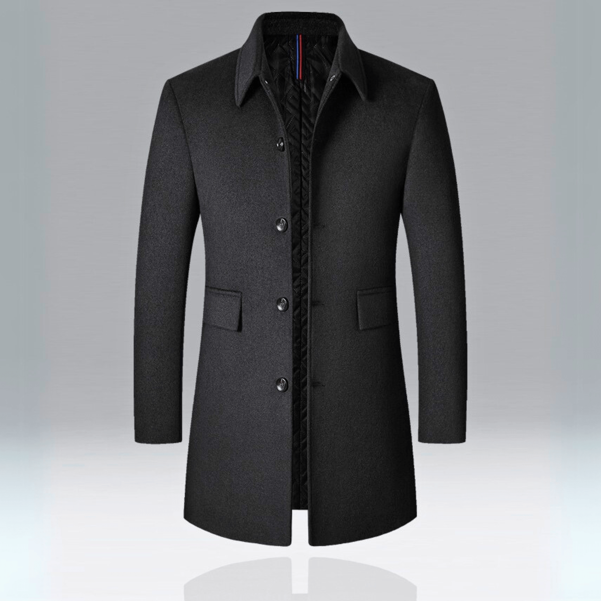 Confeccionado en lana premium con un corte largo y ajustado, que ofrece un estilo atemporal y calidez confiable. Diseñado con un clásico cuello de solapa y forro acolchado, es el equilibrio perfecto entre un estilo de negocios-casual y versatilidad para el día a día.